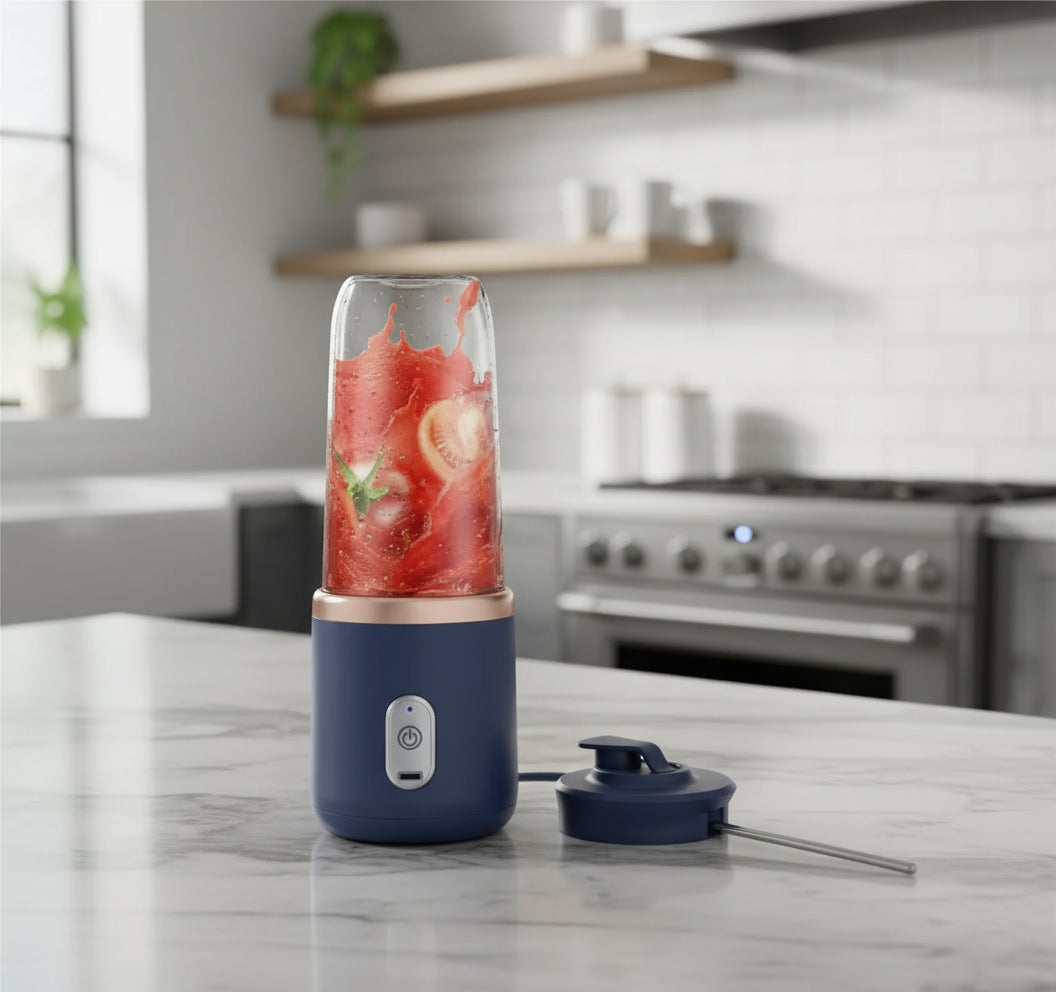 The Portable Blender Cup is a compact, rechargeable blender designed for on-the-go lifestyles. It lets you blend smoothies, protein shakes, baby food, or even small ice-based drinks anywhere — without being plugged in.